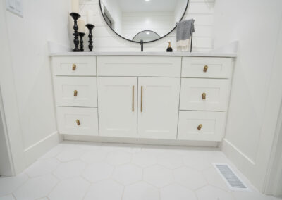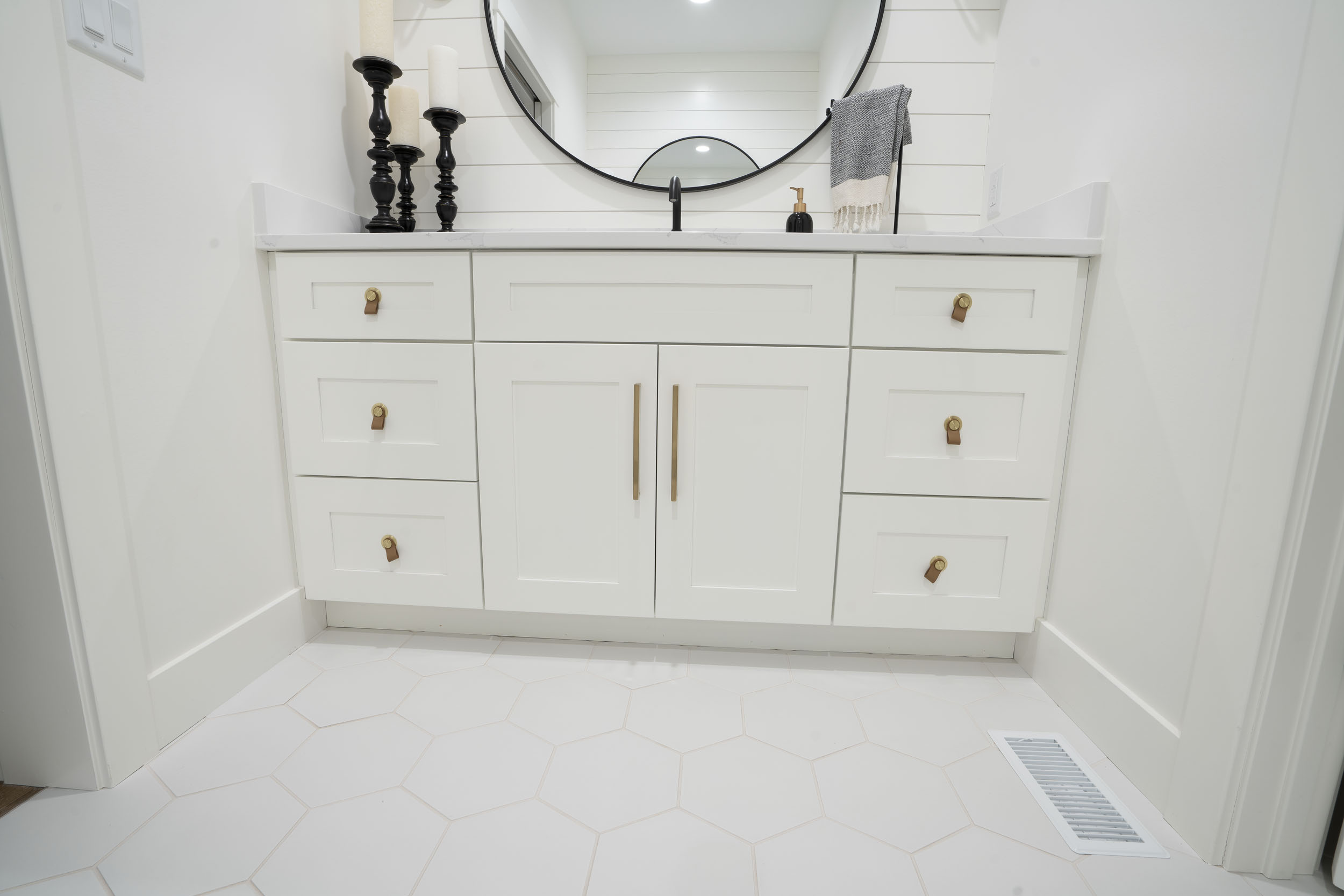 White, done right, is captivating. Here, Shaker cabinets set a tranquil tone. Like cuff links on a crisply starched dress shirt, a touch of ornamentation elevates the ensemble to elegance.